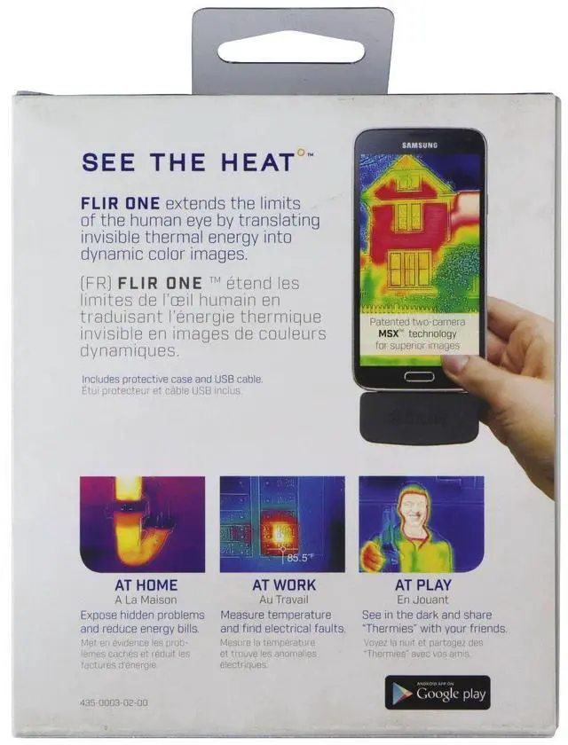 Features:Plug-in thermal imaging adapter for Android devices that uses a FLIR Lepton sensor combined with a visible light camera to create overlay images. Measures temperature differences with a sensitivity as small as 0.18 °F (0.1 °C). Visible image resolution of 640 × 480 VGA (visible light camera) and supports a measurement range from approximately -4 °F to 248 °F (-20 °C to 120 °C). Includes its own built-in battery (350 mAh) so it does not drain the host phones battery during use. Ideal for tasks such as spotting energy leaks, detecting unseen heat sources, visualizing heat signatures in low light or darkness, and building-/home-inspections.
