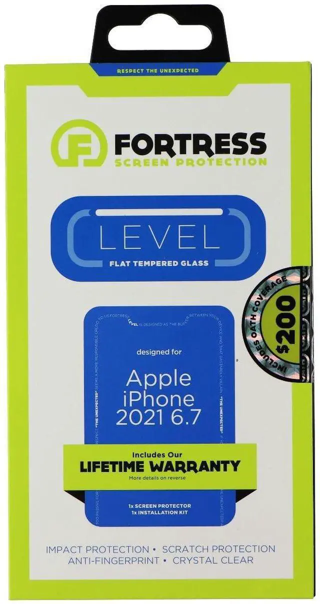 Fortress LEVEL Flat Tempered Glass for Apple iPhone 13 Pro Max Smartphones.