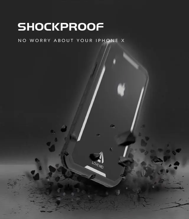 LOVE MEI IP68 Underwater Waterproof case for iPhone X 5.8inch Water proof impermeable Shockproof Cover PC + TPU Case Pouch Shell (Silver) LOVE MEI IP68 Underwater Waterproof case for iPhone X 5.8inch Water proof impermeable Shockproof Cover PC + TPU Case Pouch Shell (Silver)