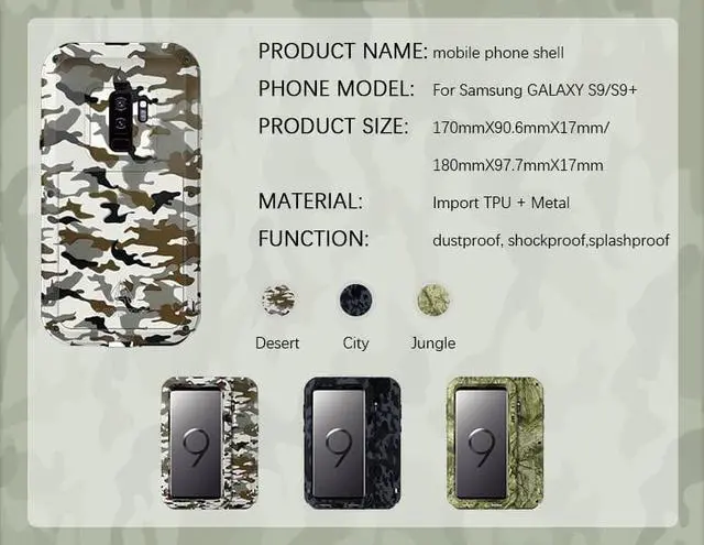 Love Mei Metal Armor Shockproof Case Aluminum Cover For Samsung GALAXY S9 Plus(jungle)