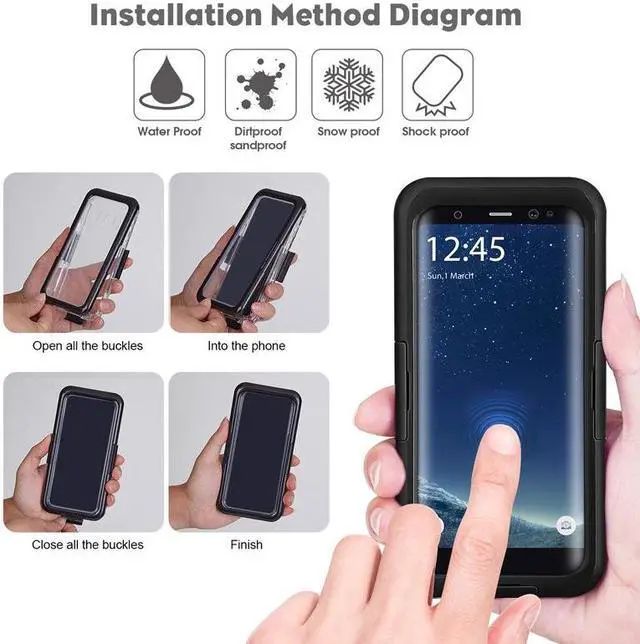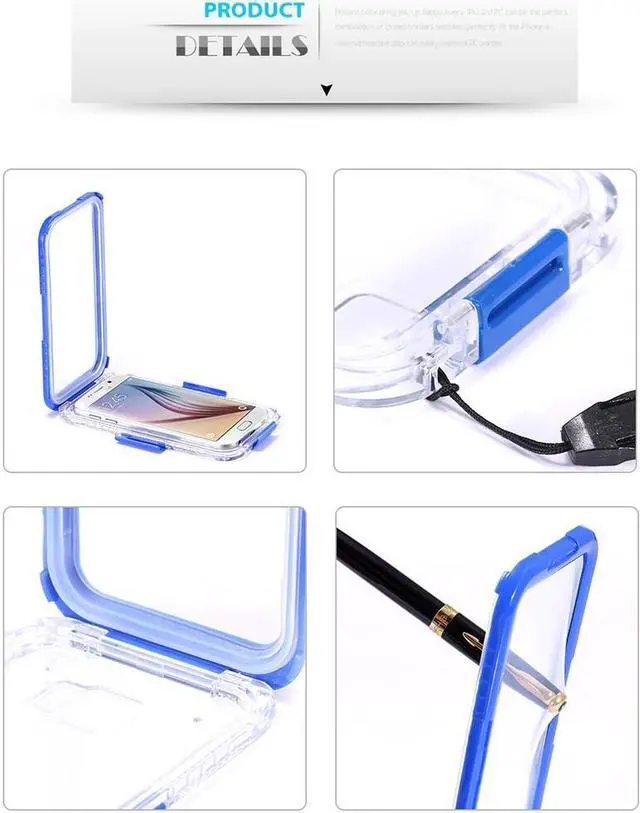 Feature: Unique open-lock design keeps your smartphone safe inside the case. Perfect when going surfing, fishing, skiing, swimming, climbing, drifting, hiking, camping... IPX-68 Qualified Waterproof Case (Underwater 6m), sand-proof and dust-proof. 100% brand new Waterproof Case for Samsung Galaxy Seires Sleek, durable and lightweight. Clear PC case protects your smartphone without obstructing the front and rear cameras. Lets you take clear pictures and videos underwater. Transparent silicone membrane allows full use of your smartphone through the touchscreen. Package Content: 1X Waterproof Shockproof DustProof Case Cover For Samsung Galaxy Series