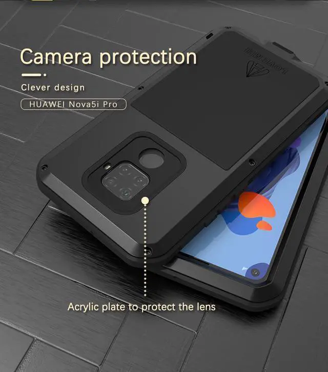 LOVE MEI Waterproof Case for HUAWEI Nova 5i pro Armored MetaLOVEMEI Powerful Metal Waterproof Back Cover For HUAWEI Nova 5i pro 2019 Case Aluminum ShockProof Defender Phone Case (Black)