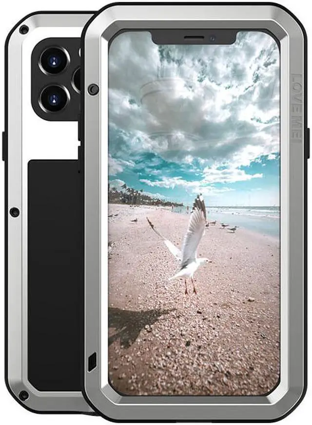 LOVE MEI Powerful Metal Waterproof Case For iPhone12 Pro Cover Full Body Protection ShockProof Phone Case (Silver)