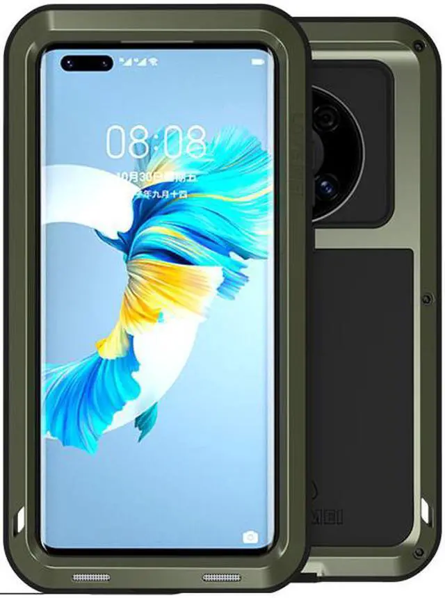 LOVE MEI Shock Dirt Proof Water Resistant Metal Armor Cover Phone Case for HUAWEI Mate 40 - Army Green 1.