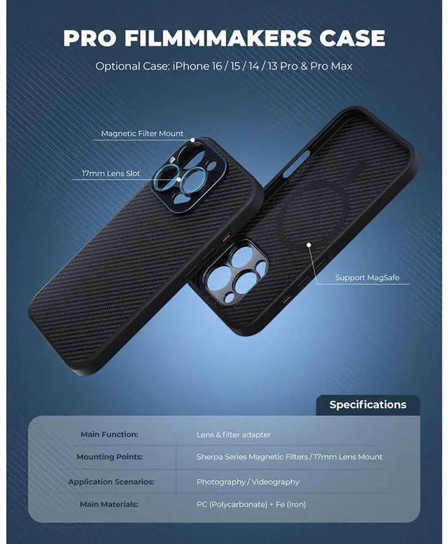 Built for Creators, this case is the ideal choice for content creators aiming to elevate their smartphone videography. With versatile lens and filter options, the Freewell Pro Filmmaker Case empowers you to push the boundaries of your creativity and produce captivating content with your iPhone 13 Pro.