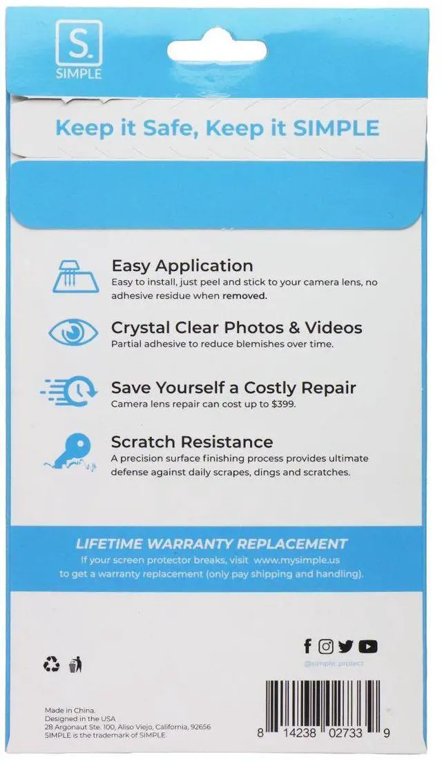 The Simple Glass Camera Lens Protector for Apple iPhone 14 Pro/14 Pro Max Smartphones. Features:Case FriendlySlim & SleekScratch ResistanceEasy ApplicationCrystal Clear