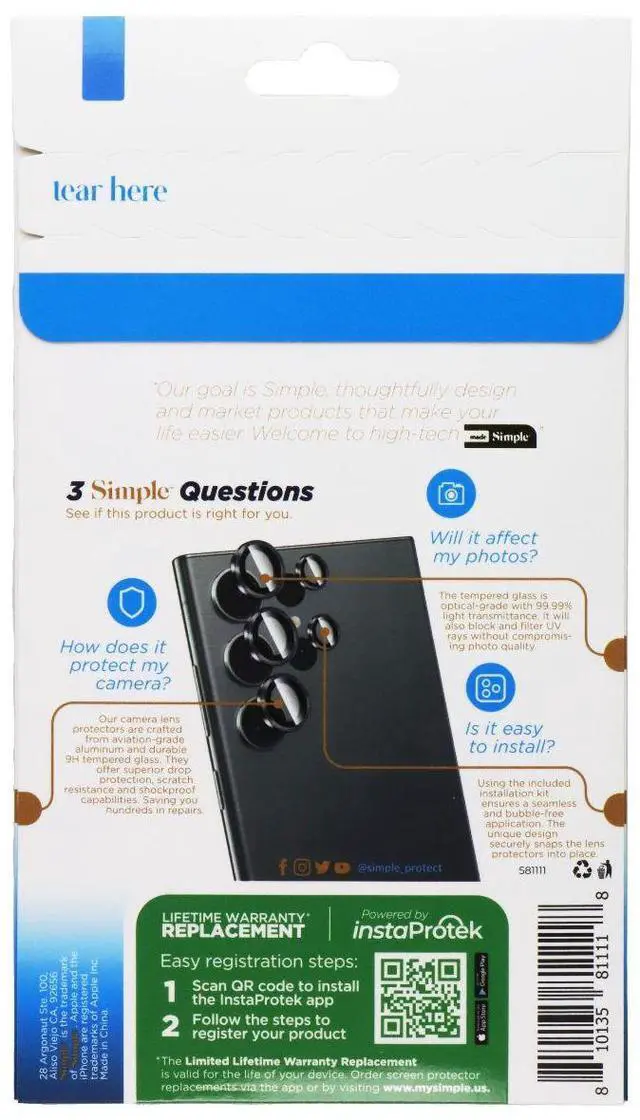 The Simple Tempered Glass Camera Protection for Samsung Galaxy S24 Ultra Smartphones.