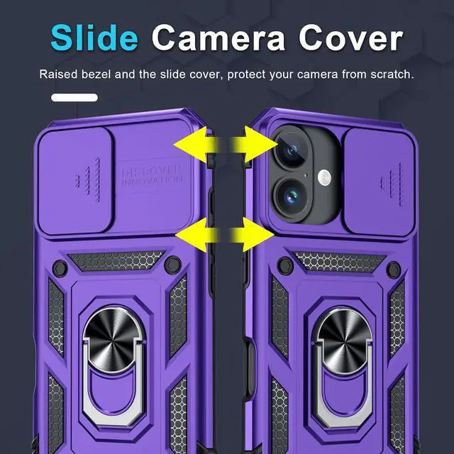 Note: Wireless charging is not supportedBuilt in Metal KickstandMetal kickstand 360°rotation ring can pull out for hands-free viewing in portrait or landscape mode. Additional the built-in metal sheet can be directly stably attached to the magnetic car phone mountDual Layer ProtectionThe case's shock-absorbing TPU bumper keep your phone safe from the occasional drop while its Hard PC back will protect your iPhone16 from daily wear and tear. Moreover the raised lip protects screen and camera effectivelyUnique Camera WindowThe sliding lens cover and raised bezel protect your phone camera from scratches. It can slide smoothly left and right perfect to hide the camera. Besides the sliding cover is slightly locked on both sides and can not be slid at willFree Screen ProtectorThe case presents 1 Pack screen protector HD clear scratch resistant bubble free anti-fingerpeints tempered glass. No need to buy the screen protector or camera cover separately