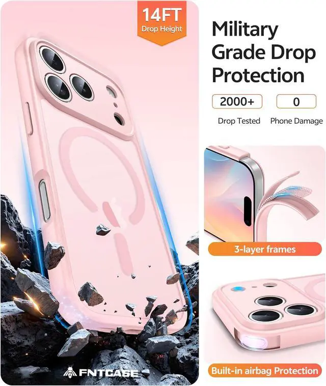 Grade Drop Protection: Our Phone Case iPhone 17 Pro Max backplane is made with rigid polycarbonate and flexible shockproof TPU bumpers around the edge and features 4 built-in corner Airbags to absorb impact which can prevent your Phone from accidental drops bumps and scratchesMatte