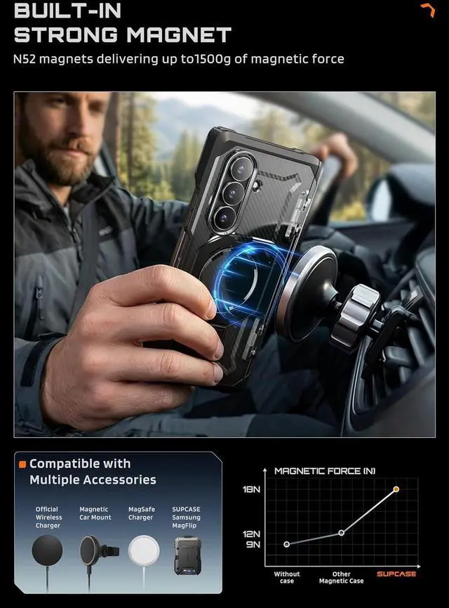 Compatible]: Integrated N52 magnetic ring with 1 500 g magnetic force for flawless compatibility with MagSafe accessories.