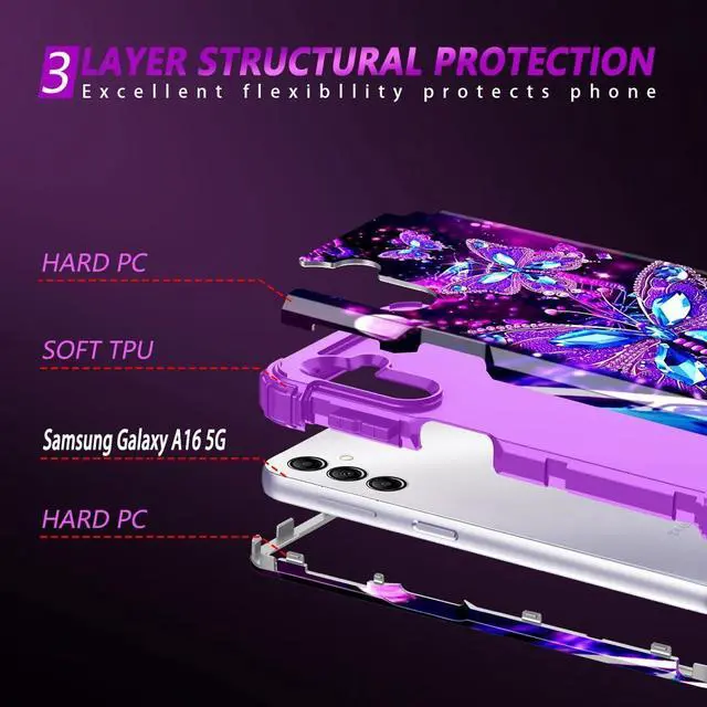 CompatibleOnly Compatible with Galaxy A16 5G 6.7 inch 2025 Release Case NOT fit for any other phone models. Precision cutouts for easy access to all ports buttons sensors and cameras. The unique ergonomic design makes independent buttons feel sensitive and easy to press with good touch. (Without screen protector) Glow and Shiny in the Dark PatternThe charming pattern in the hard back PC cover makes your Galaxy A16 look much more eye-catching and attractive. The case will glow in the dark after absorbing enough light under the sun or other light sources so that you can easily find your phone at night.