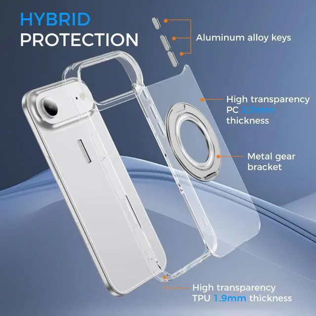 More than a stand, this case for iPhone 15, 16, and 17 with kickstand works as a stable support, a ring holder, and a magnetic partner all in one. Open it for hands-free viewing and a secure grip, close it and it becomes a seamless magnetic case compatible with most magnetic accessories. Made of durable zinc alloy, the stand ensures reliable daily use and reliable wireless charging without removing the case.