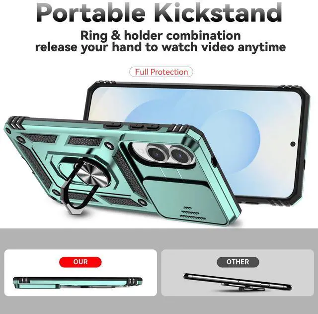 TYJKeJi Case with Stander Fashion Cover KickStand Case For Samsung Galaxy S25 Edge (Green)