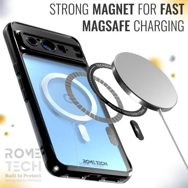 Rome TechClear Holster Case w/Magsafe case forGoogle Pixel 8 Prooffers two layers of rugged protection while maintaining a slim profile and feature-rich design. The inner soft TPU layer has a textured pattern for a better non-slip grip. The outer hard polycarbonate PC layer has a unique design that provides excellent protection against drops, scratches, and bumps. Raised beveled edge keeps your touchscreen and camera lens safe from scratches. MagSafe support enables support for magnetic chargers and car holders.