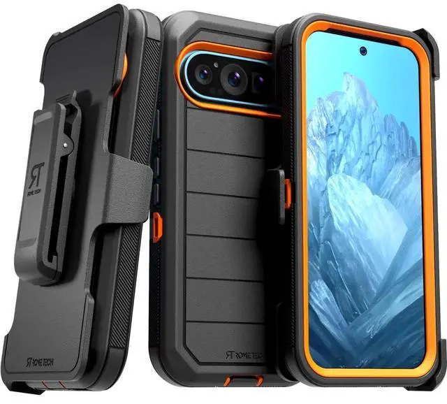Protective Cases for Google Pixel 9 Prois four layers of 360-degree heavy-duty shockproof protection. Our defender series case is made out of durable materials with a hard polycarbonate inner shell and soft outer rubber layer. Raised beveled edge keeps your touchscreen safe from scratches. A 360-degree swivel belt clip also functions as a kickstand with different viewing angles perfect for video calls and media playback. Defender series also have easy access to the charging port, buttons, sensors, and camera. Built-in port covers offer protection from dust, dirt, and other elements, making it ideal for commercial use. Rome Tech's Defender series multi-layer design offers rugged drop protection ideal for outdoor adventures, sports, hiking and guards your device against scrapes, bumps, dirt, and dust.