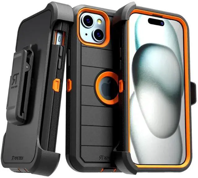 Protective Cases for Apple iPhone 15a is four layers of 360-degree heavy-duty shockproof protection. Our defender series case is made out of durable materials with a hard polycarbonate inner shell and soft outer rubber layer. Raised beveled edge keeps your touchscreen safe from scratches. A 360-degree swivel belt clip also functions as a kickstand with different viewing angles perfect for video calls and media playback. Defender series also have easy access to the charging port, buttons, sensors, and camera. Built-in port covers offer protection from dust, dirt, and other elements, making it ideal for commercial use. Rome Tech's Defender series multi-layer design offers rugged drop protection ideal for outdoor adventures, sports, hiking and guards your device against scrapes, bumps, dirt, and dust.