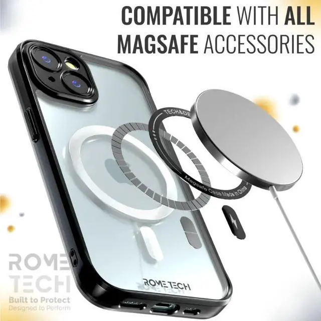 Rome TechClear Holster Case w/Magsafe case for Apple iPhone 14 offers two layers of rugged protection while maintaining a slim profile and feature-rich design. The inner soft TPU layer has a textured pattern for a better non-slip grip. The outer hard polycarbonate PC layer has a unique design that provides excellent protection against drops, scratches, and bumps. Raised beveled edge keeps your touchscreen and camera lens safe from scratches. MagSafe support enables support for magnetic chargers and car holders.