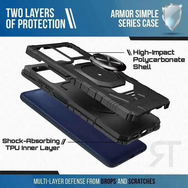 The Armor Simple series cases are perfect for any adventurer. Offering rugged protection and unique features like the ring holder, kickstand, and magnetic backplate compatible with magnet mounts, it's perfect for your active life.