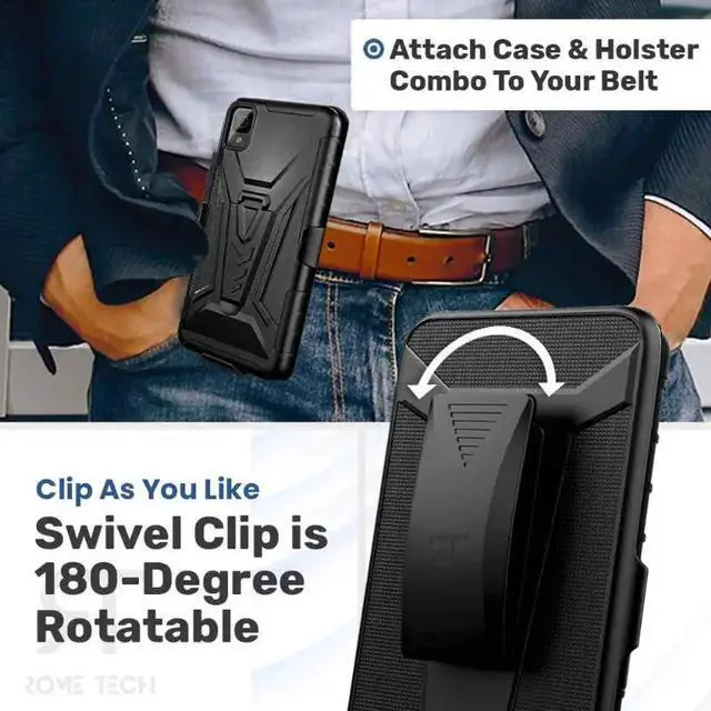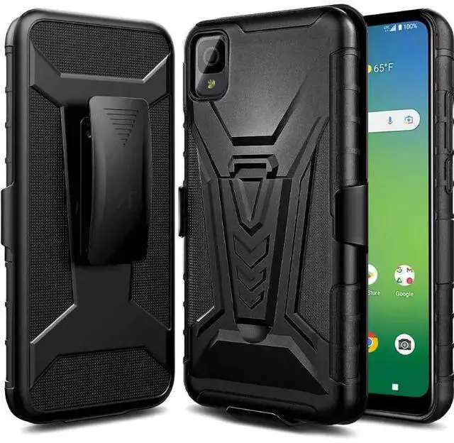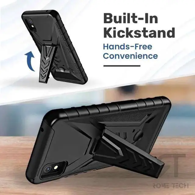 Rome Tech Dual Layer holster case for Cricket Icon 4 offers two layers of rugged protection while maintaining a slim profile and feature-rich design. The inner soft TPU layer has a textured pattern for a better non-slip grip. The outer hard polycarbonate PC layer has a unique design that provides excellent protection against drops, scratches, and bumps. Raised beveled edge keeps your touchscreen and camera lens safe from scratches. A foldable kickstand is perfect for video calls and media playback.