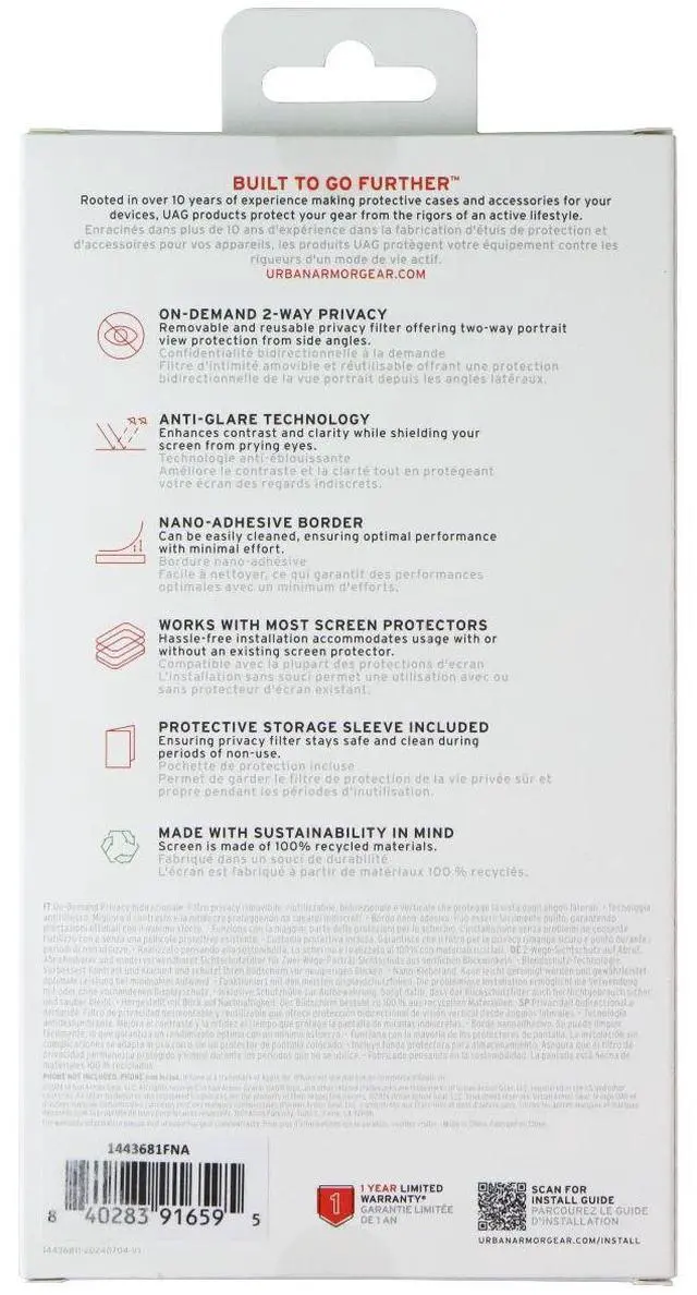 Urban Armor Gear Removable Privacy Screen for Apple iPhone 16 Pro Smartphones.