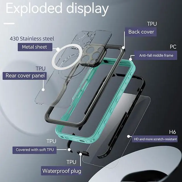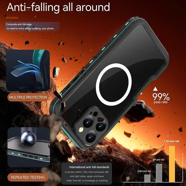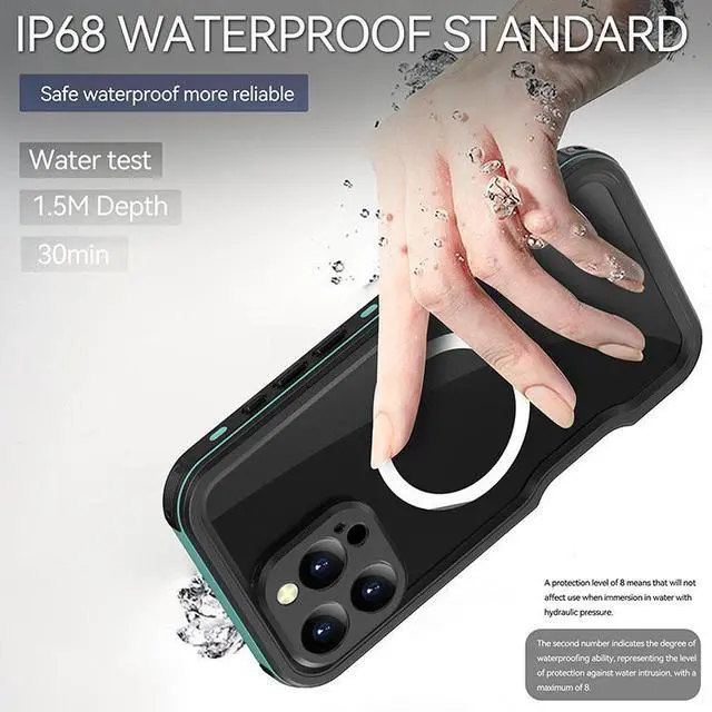 360 degree full body protective your iPhone 16 Pro Max (6.9"), designed and tested to submersible to 6.6-10ft/2-3m for 30 minutes, and it can take pictures underwater