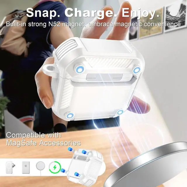 Compatible with MagSafe Ready --- strong magnets in the back of the case ensure a secure lock on MagSafe chargers, letting you enjoy tap-and-go wireless charging for your earbuds