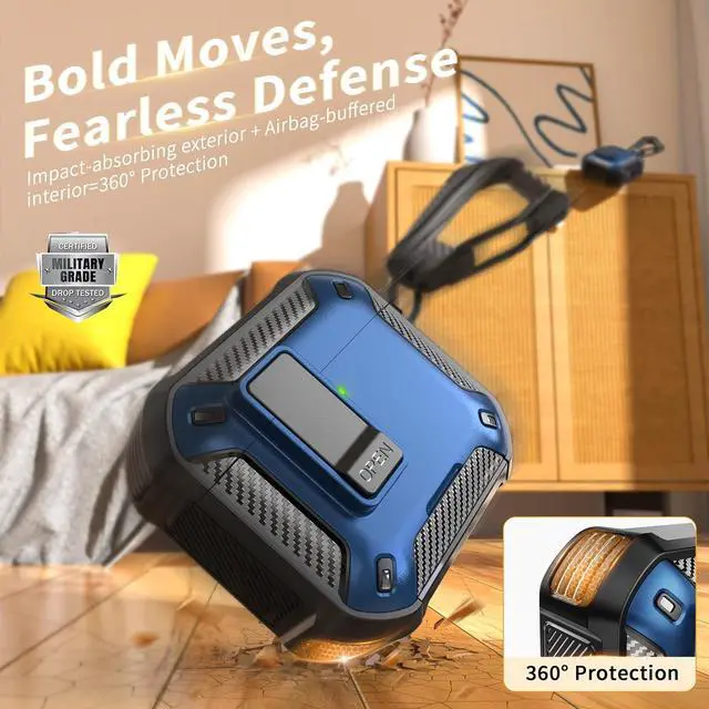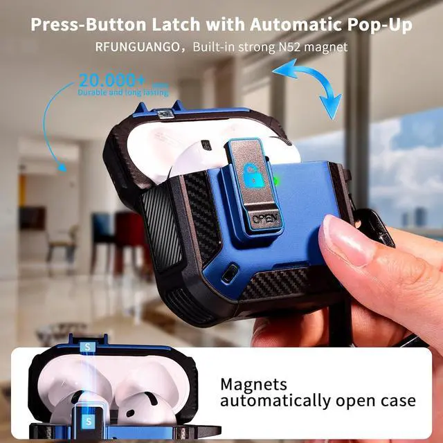 Unique Security Lock and Automatic Pop-up --- Upgraded security lock design makes opening and closing easier. Press the "OPEN" button and the top of the box will automatically pop open. Keep the AirPods Pro 3 charging box airtight and ensure the lid never falls off.