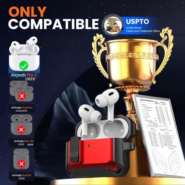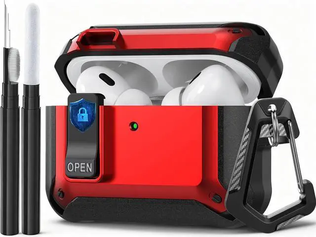 Package included --- 1 x Lock Case for airpods pro 3 2025 + 1 x Carabiner + 1 x Adhesive tape + 1 x Cleaning Kit Pen.