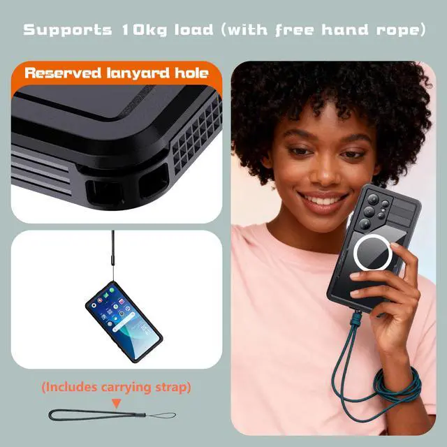 Compatibility --- Waterproof Case Compatible for Samsung Galaxy S26 Ultra 2026, the waterproof Case is Compatible with Mag-safe Ring, Case for S26 Ultra Phone Case with Strap for Women and Men. (Tips: only case, not include Phone). Kindly Noted: Does not support fingerprints Scanner because of the functional screen protector design.