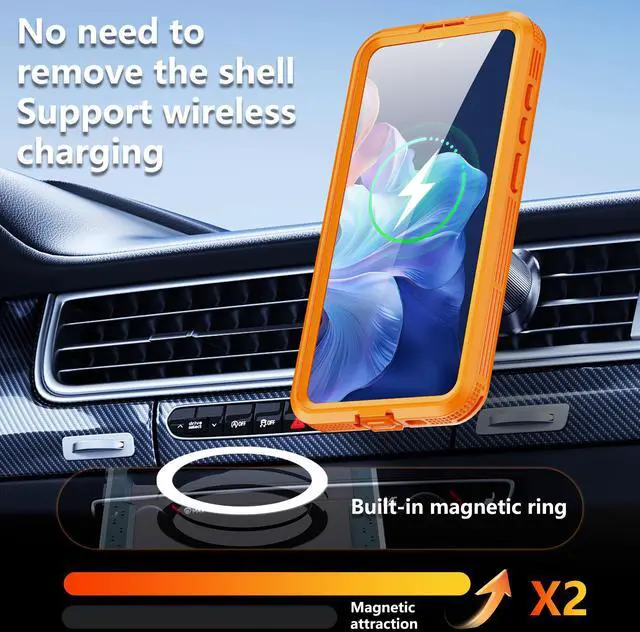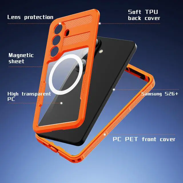 Waterproof Case for Samsung Galaxy S26 Plus with Screen Protector,Compatible with Mag-Safe, Protective Phone Cover for Samsung S26 Plus Waterproof Case Clear Black Orange