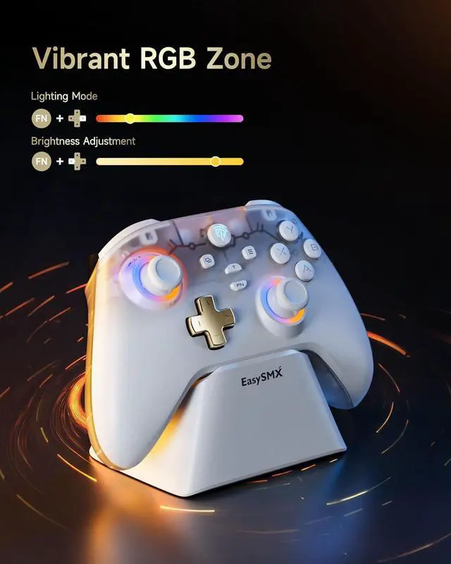 Charging Dock & Fast Power: All-in-One Hub: Magnetic dock charges the controller, stores the 2.4G dongle, 1000mAh Controller battery fully recharges in 2.5 hours.