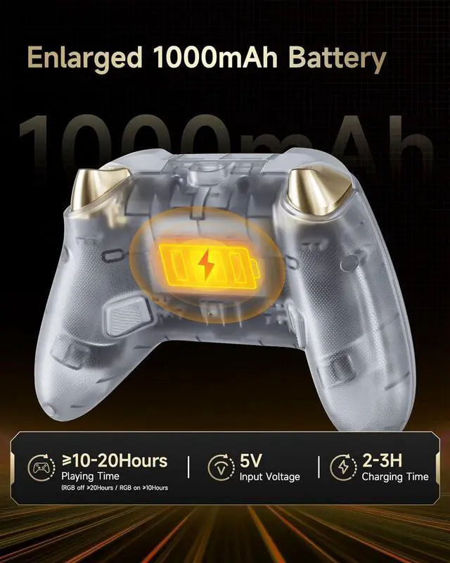 Pro-Grade Customization: 1- 2 Programmable Back Buttons: Assign macros, shortcuts, or complex combos for MOBA/FPS games. 2- On-Device Tuning: Adjust brightness, trigger sensitivity, Turbo and vibration intensity directly on the controller