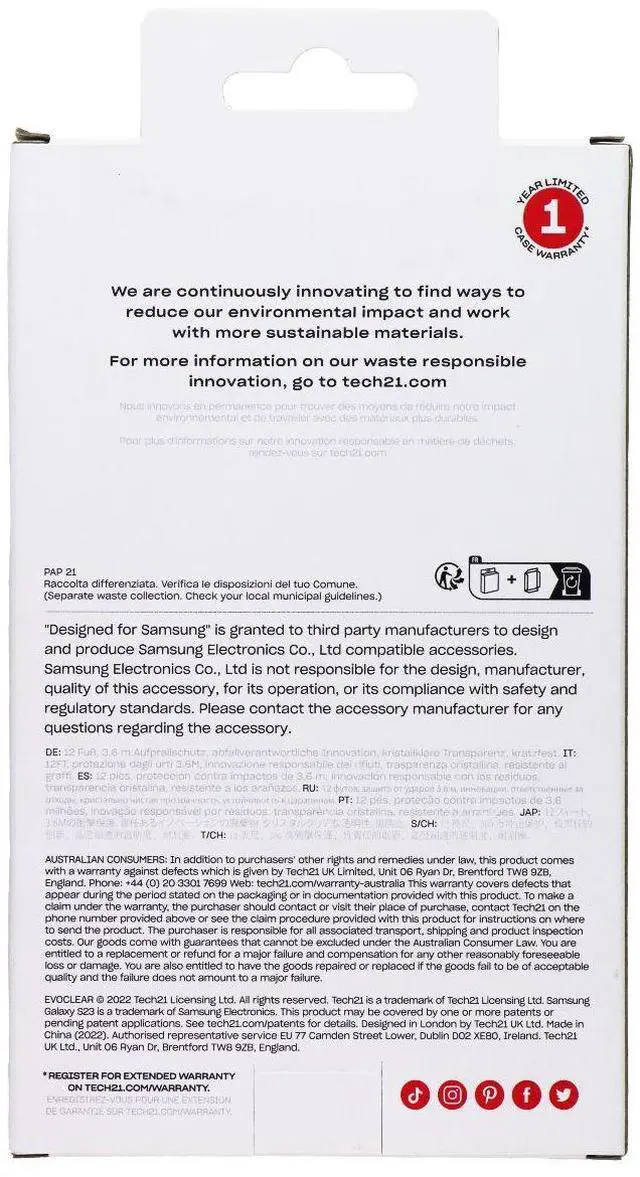 The Tech21 EvoClear Series Case for Samsung Galaxy S23 Smartphones. ClearKEY_TAB Version.