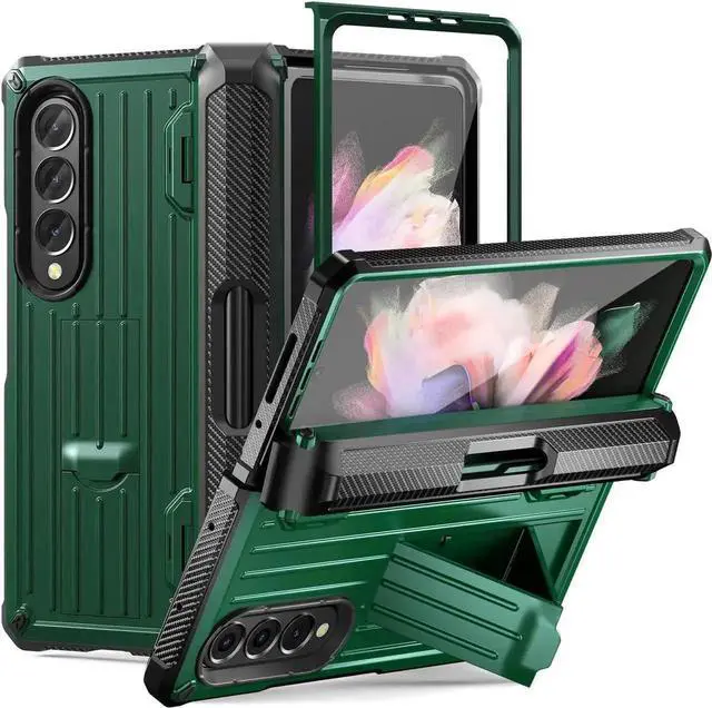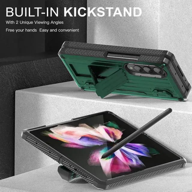 Built-in Kickstand for Hands-free Convenience: The Samsung z fold 3 case with hidden kickstand, unfold and it will bring 4 standing ways and the most comfortable viewing angles to free your hands when you are reading, watching the video, making video calls or notes, painting, etc.