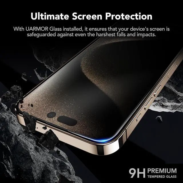 [Ultimate Screen Protection: 9H UARMOR Glass] The UARMOR Glass, featuring a multilayer structure with 9H hardness tempered glass, provides the highest level of protection and shatterproof durability for your iPhone. It safeguards your device from daily impacts, drops, and scratches, ensuring that your iPhone always remains safe.