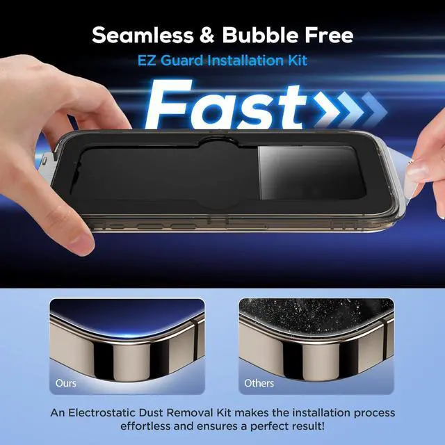 [Seamless & Bubble-Free EZ Guard Easy-Installation Kit] Upcommon' s innovative EZ Guard Easy-Installation kit, featuring an electrostatic dust removal feature, simplifies the installation process and guarantees a perfect result. It' s the easiest way to install a screen protector without any frustration.