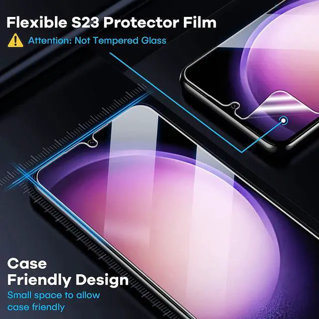 Smooth and Touch Sensitive: Flexible S23 screen protector film constructed with soft PET HYBRID material ( 0.23 mm), offers smooth touch & high sensitivity. Compared with other tempered glass protectors, this film screen protector for Samsung S23 will be more sensitive and offer great protection against scratches.