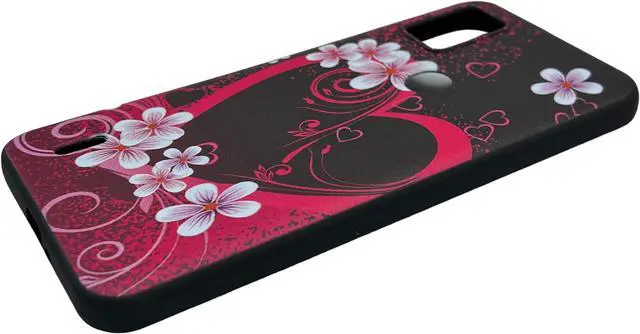 For AT&T Motivate 4 2023 TPU Flexible Skin Cover Cell Phone Case + Tempered Glass - Pink Heart