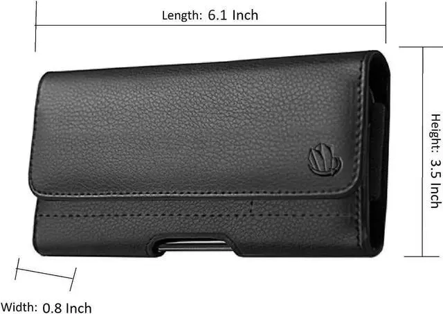 ExtremeCases: Universal 6.1 Black Horizontal Belt Clip Pouch (+1 X Tempered Glass) with 4 total slots; 2 for card or cash and 2 for coins, folded up paper or maybe a small key. Close by a magnetic tab. Can use a slim hybrid case with this universal pouch. (Just not bulky wallet case) Extra security by placing into the belt loop, or onto the belt. Has easy access to remove your phone with a push hole on the bottom.