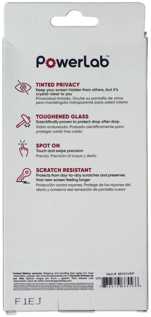 The PowerLab Privacy Glass Screen Protector for Apple iPhone16e/14/14 Pro/13 Pro/13 Smartphones.