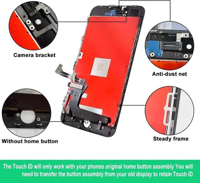 [Installation Instructions] This iphone 8 plus lcd screen replacement comes with a cool repair toolkit and super-easy instructions. All you need to do is carefully remove the front camera, speaker, and home button from your original screen and gently transfer them to the new screen, then pop it in! Before installation, you can watch our online instruction video on our page to save time and money!
