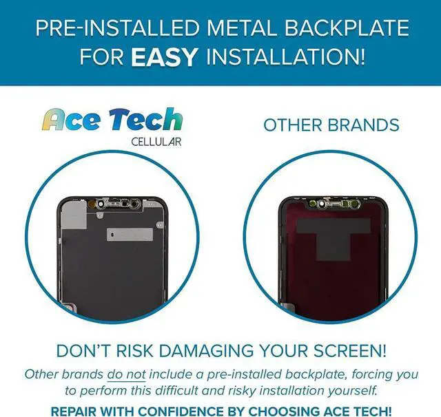 TOOL SET - Every order comes with a replacement screen assembly and 6-piece tool set, screen protector and adhesive for a quick and easy install. Back plate pre-installed to reduce the most damage during installation. However, the kit does not include the following Ear Speaker, Front Camera, Proximity Sensor. Please transfer these from your old screen.