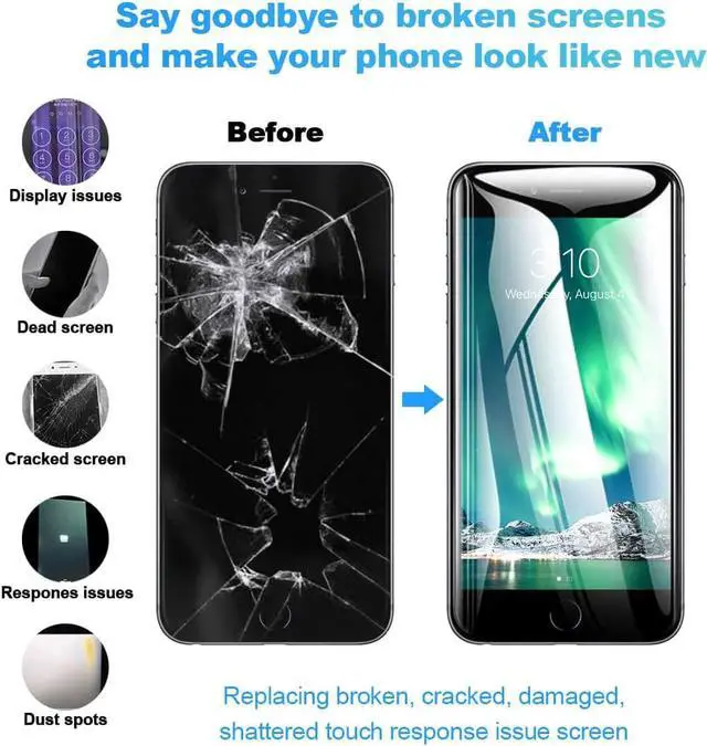6. It doesnt include home button, front camera and earpiece and sensors components so please swap them out from your old screen. With full perspective, wide color gamut, you can use it with sunglasses. It's used to replace the cracked, defective, faulty, dead, broken screen, touch response issues, abnormal pixels, malfunctioning lcd.