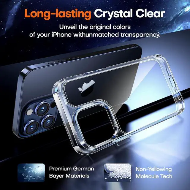 Crystal Clear: The iPhone 15 pro max clear case Crafted from elite-grade Germany Bayer TPU, An embedded Nano antioxidant layer resists blemishes and perspiration, immune to yellowing, preserving the original aesthetics