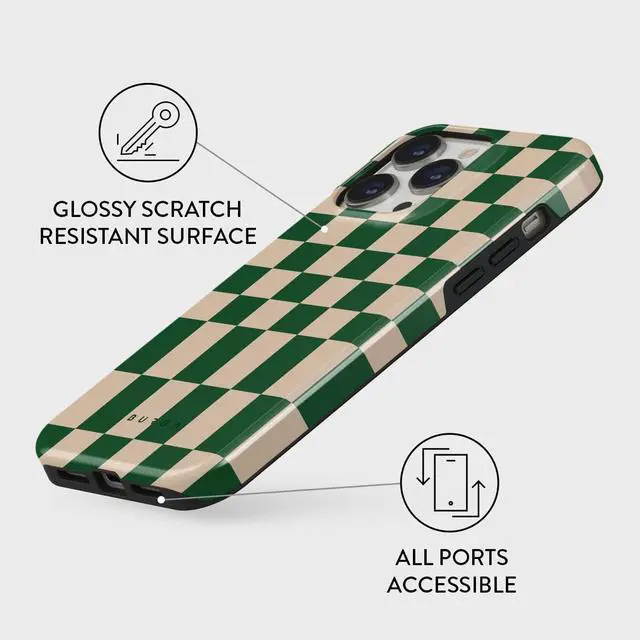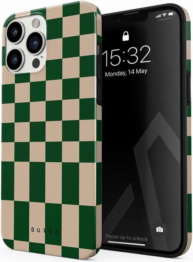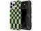 BURGA Phone Case Compatible with iPhone 14 PRO - Hybrid 2-Layer Hard Shell + Silicone protective Case -Green Checkers Pattern Chess - Scratch-Resistant Shockproof Cover
