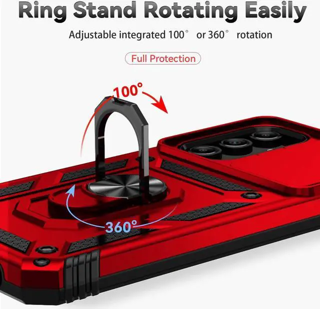 360° Rotable Magnetic Kickstand Advanced Ring Metal kickstand can rotate 360°, easy to rotate and sturdy on the phone case. Built in kickstand gives you the convenience to watch videos and movies hands-free with desired comfort and stability.