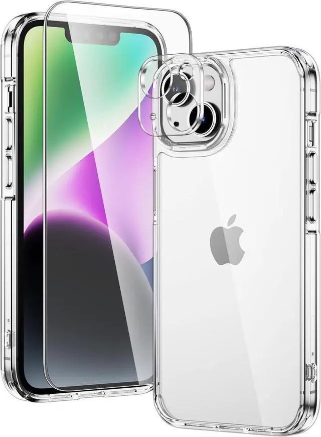 • 4.Hybrid and Crystal ClearThe iphone 14 case with screen protector has structure of TPU frame + PC back, slim fit, nice to grip, and beautiful and professional design to show the original appearance and color of your iPhone14.