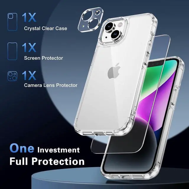 for iPhone 14 Case Clear with Screen Protector, Camera Lens Protector, Military-Grade Protection, Hybrid iPhone 14 Clear Case with Cushion buffer (Crystal Clear)