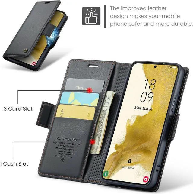 Card Slots with RFID Blocking: The Samsung Galaxy S22 flip case features 3 card slots and a cash compartment to help you store ID card, credit cards and driving license, credit cards without carrying your bulky wallet. The case is designed with RFID shielding technology that can shield the signals to protect your personal information from being stolen.