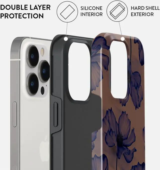 BURGA Phone Case Compatible with iPhone 14 PRO - Hybrid 2-Layer Hard Shell + Silicone protective Case - Dark Flowers Floral- Scratch-Resistant Shockproof Cover